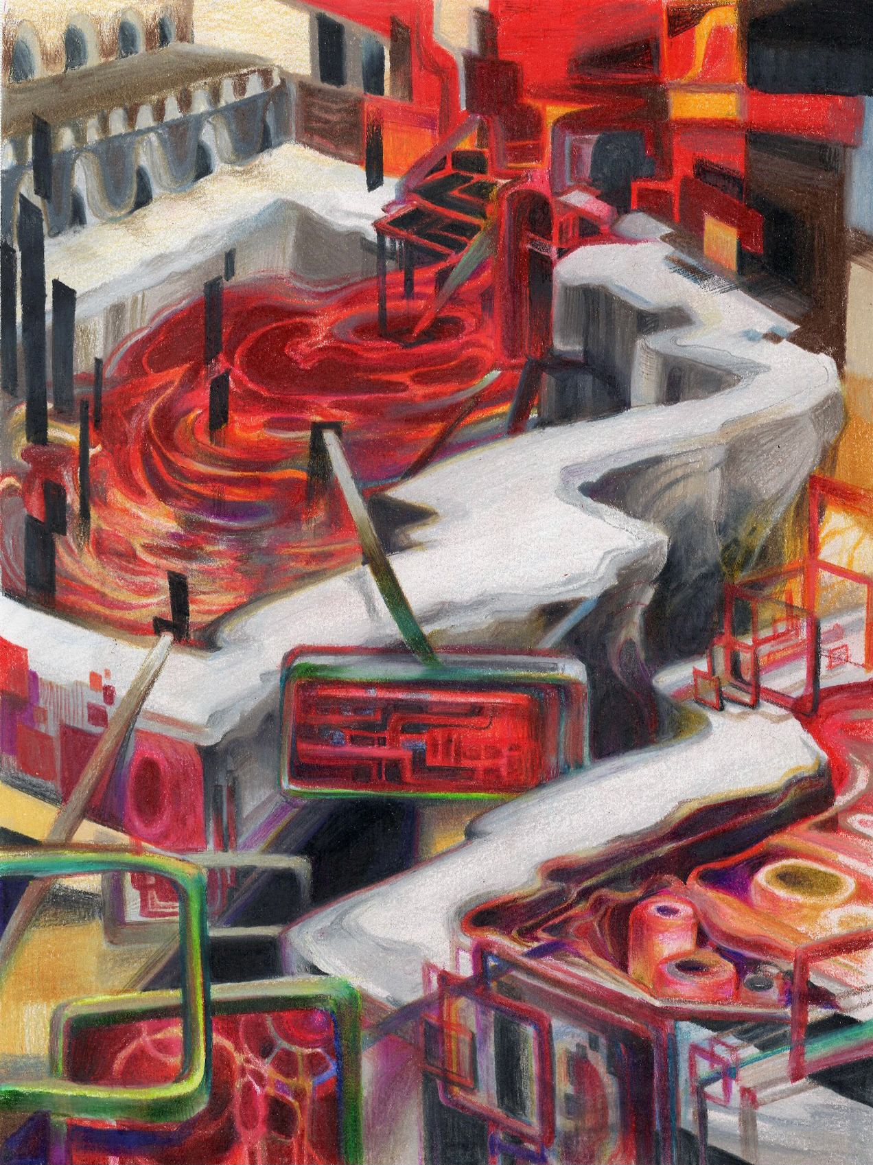 Cellular growths in color pencils